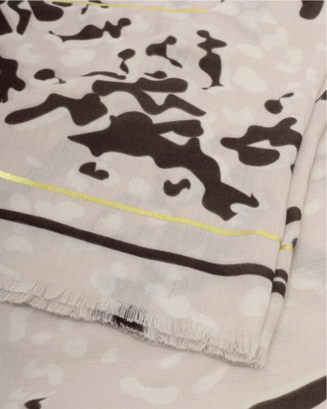 Katie Loxton | Light Taupe, Chocolate & Gold Animal Printed Scarf